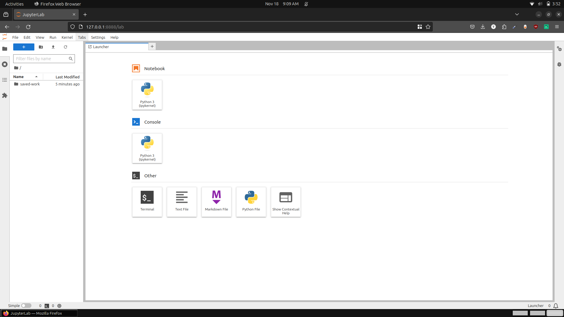 - http://127.0.0.1:8888/lab - Jupyter Lab server. Easier to upload files etc.